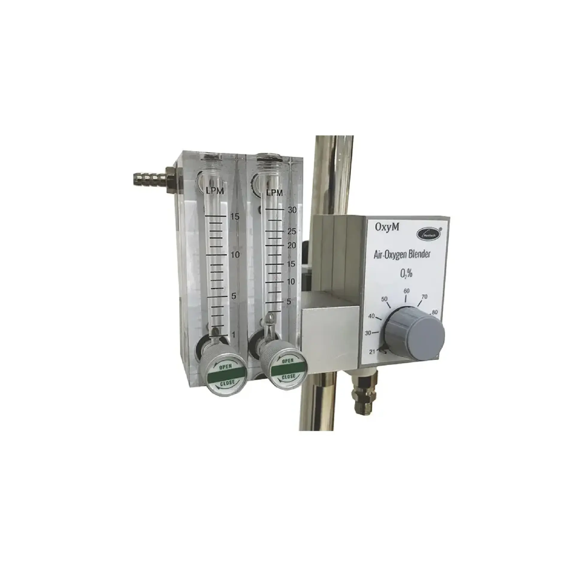 - İki adet 30 LPM'lik kademeli akışmetre sayesinde, hastaya iletilen gazın basıncı dakikalar içinde hassas bir şekilde ayarlanabilir.